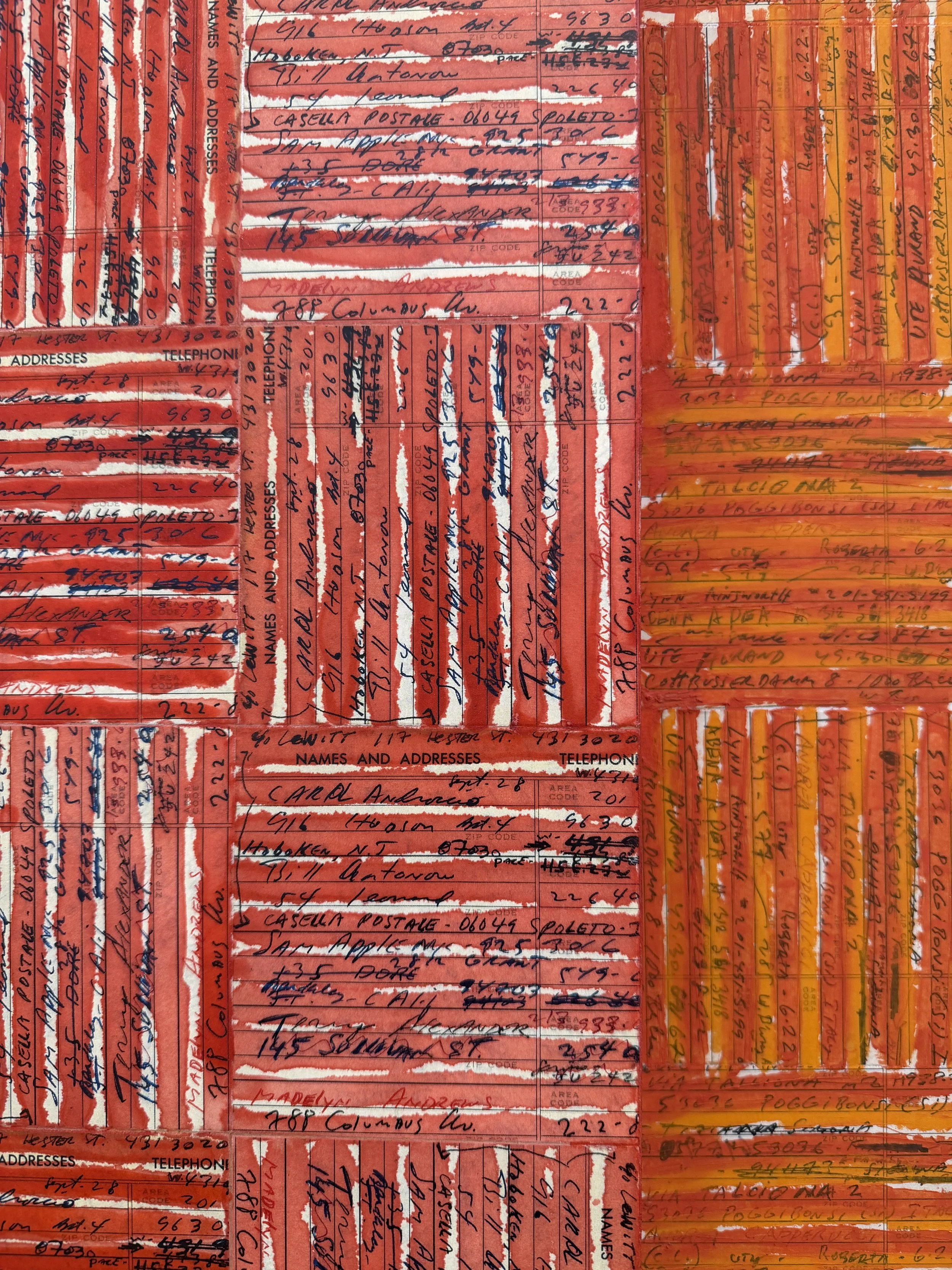Next up, McArthur Binion at Lehman Maupin. I love how he plays with the modernist grid, using personal details, notes and loose painting. This shot is a detail of one of the works.
