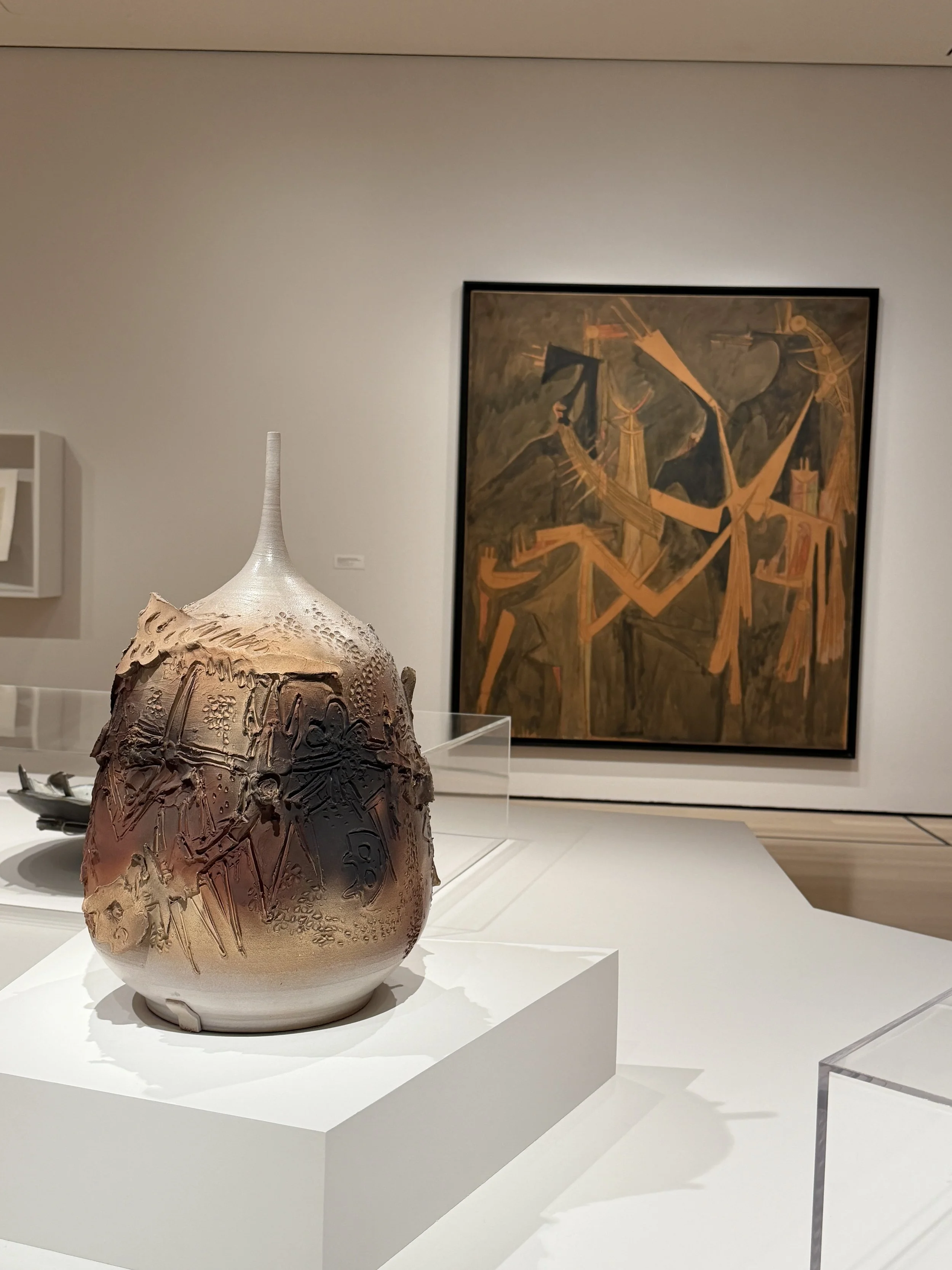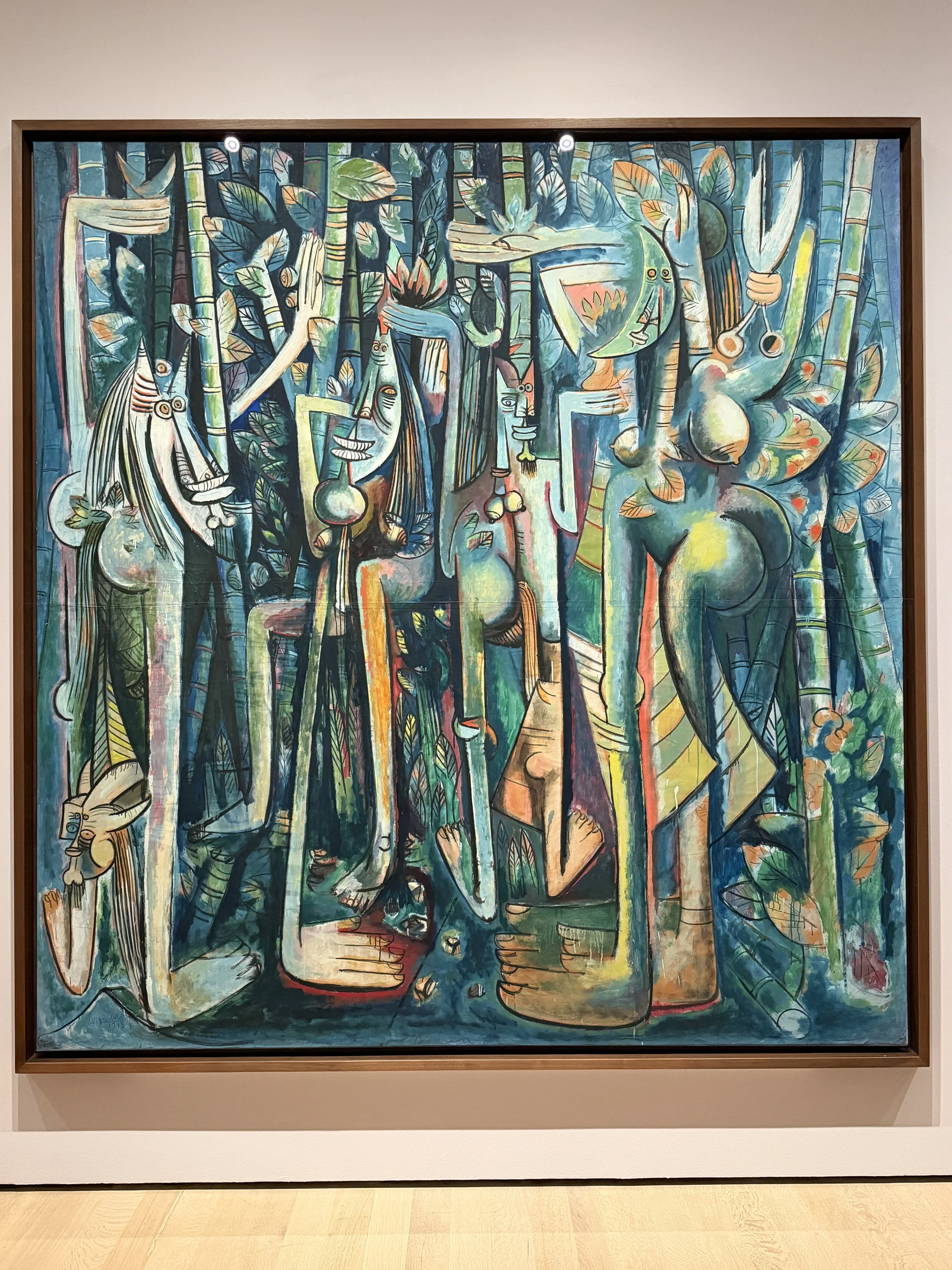 I had a bit of housekeeping to do on my last full day in NYC, so I cleaned up the lovely apartment that a good friend had lent me, had a nice breakfast, packed up as much as I could in advance of my very early flight the next morning, and then took the subway uptown to MoMA. I had been there in December, and saw the Ruth Asawa retrospective, but I had been pressed for time that day, so I missed the Wifredo Lam exhibition, When I Don’t Sleep, I Dream. Lam, who was of Afro-Caribbean and Chinese descent, took the tenants of modernism and combined them with deep cultural associations and imagery. His geographic trajectory was astonishing—he spent time in Europe off and on (becoming good friends with contemporaries like Picasso) but was constantly displaced, exiled, and shuffled about, resulting in a very broad approach to his work. At some points, he was so impoverished that he made large-scale works on craft paper, using highly diluted paint. These works are the most powerful, in my opinion; the techniques that were necessitated by his lack of money seem really fresh, personal, and highly developed. I loved the surfaces of these works much more than those of his oil paintings. He experimented with many different media, and I especially liked his ceramic works. Really terrific show.