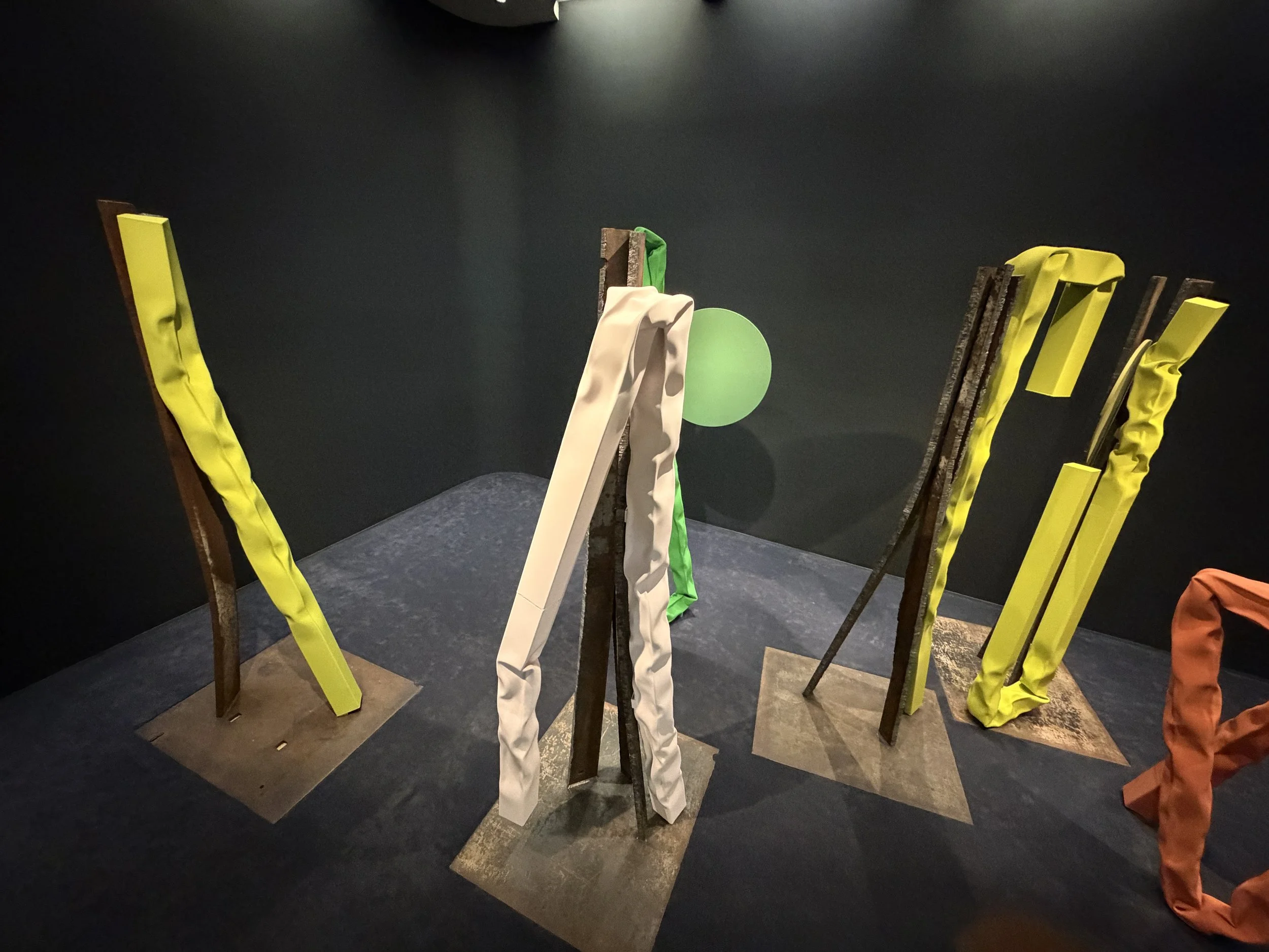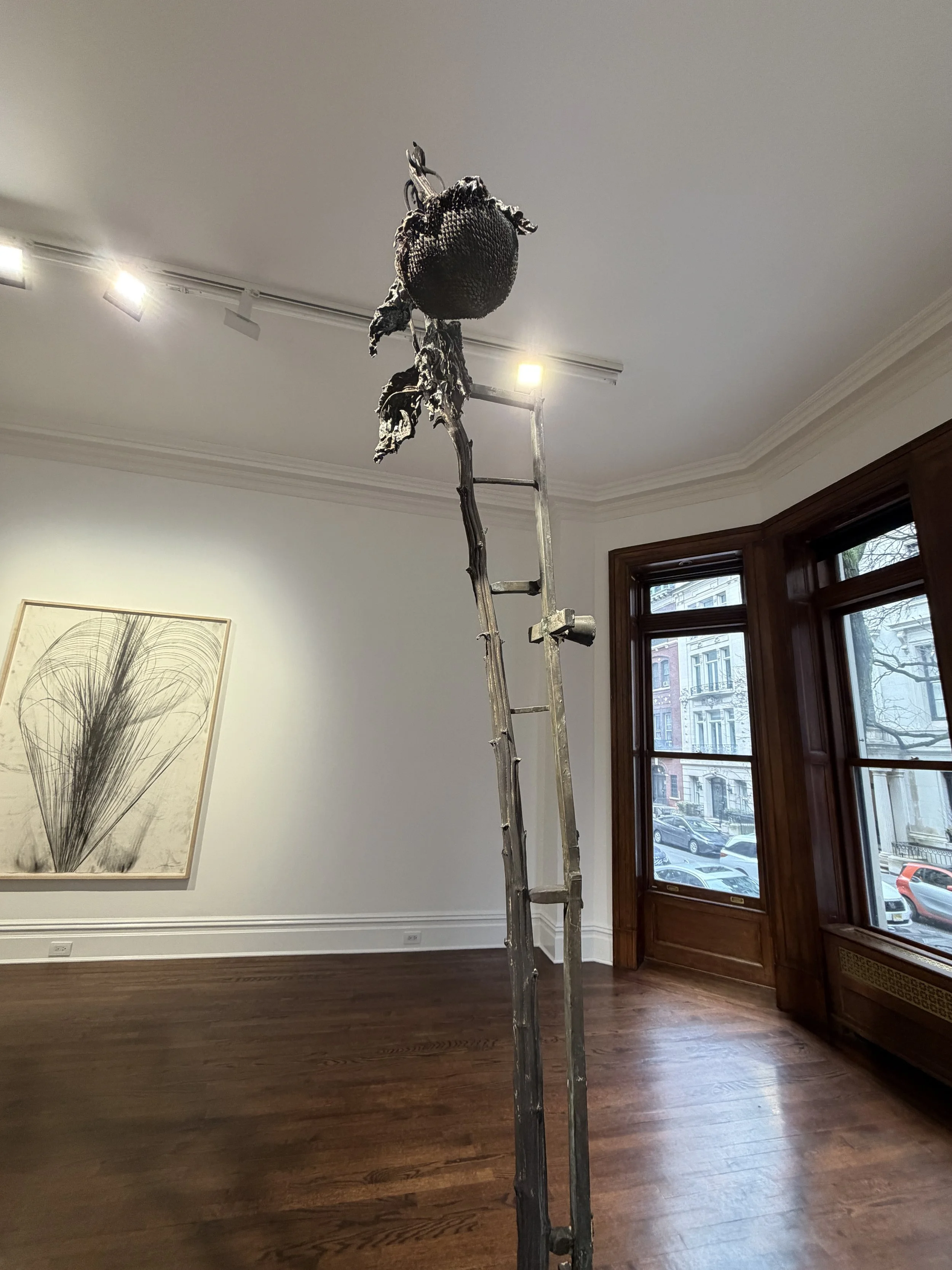 Sterling Ruby at Sprüth Magers. I am not an avid Sterling Ruby fan, but I popped into to see this show, and was glad I did. The drawings have real, frenetic energy, and the sculptures—of cast plants propped up by armatures—were rather interesting. The largest, which involved a dead sunflower, reminded me of my favorite Anselm Kiefer sculpture, which I’ve seen at the Margulies Collection a couple of times. I think of it often; I love how the precarious stack of detritus—drywall, wood, cardboard, rocks—is combined with the dead husks and stalks of sunflowers. There’s something so damned sad about this piece, which reminds me of demolition sites, cairns, and—amazingly—the very fragile form of the Apollo 11 Lunar Module.