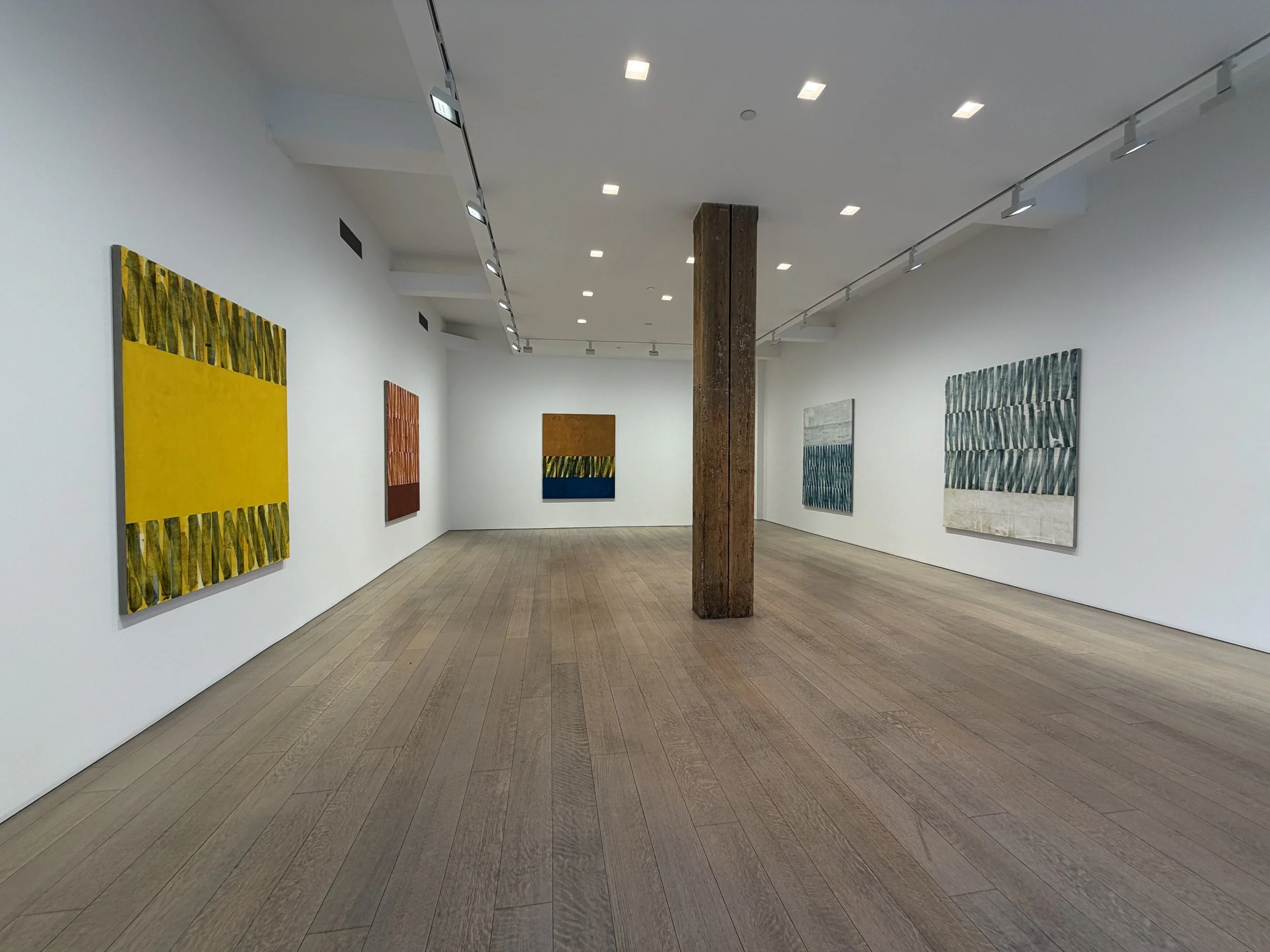 Anne Truitt at Matthew Marks. What a lovely exhibition, beautifully installed. Really loved the late works on paper, especially, in a range of pinks, buttery yellows, grays and black, with a subtle division of space, barely perceptible.