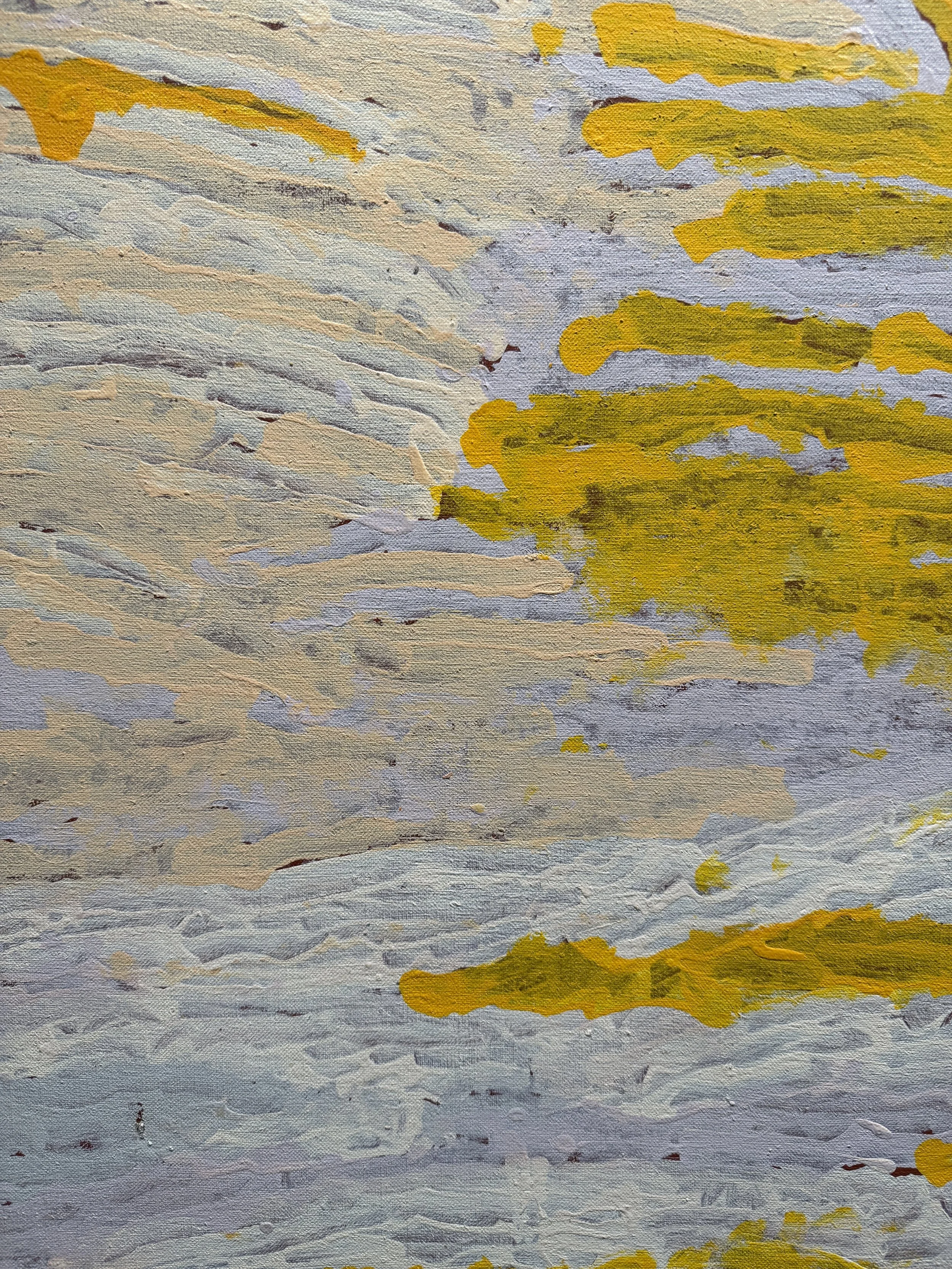 Makinti Napanangka at d lan gallery. I loved this exhibition of works by Aboriginal painter Napanangka. All were executed in a range of yellows and oranges, all laid on to dark grounds of either black or a deep, oxblood red. In some cases, pinks, lavenders and grays were used as well. But boy, she did a lot with this very limited palette. The gestures, rather jittery, with varying opacity, have a beautiful, lively energy. Really wonderful.